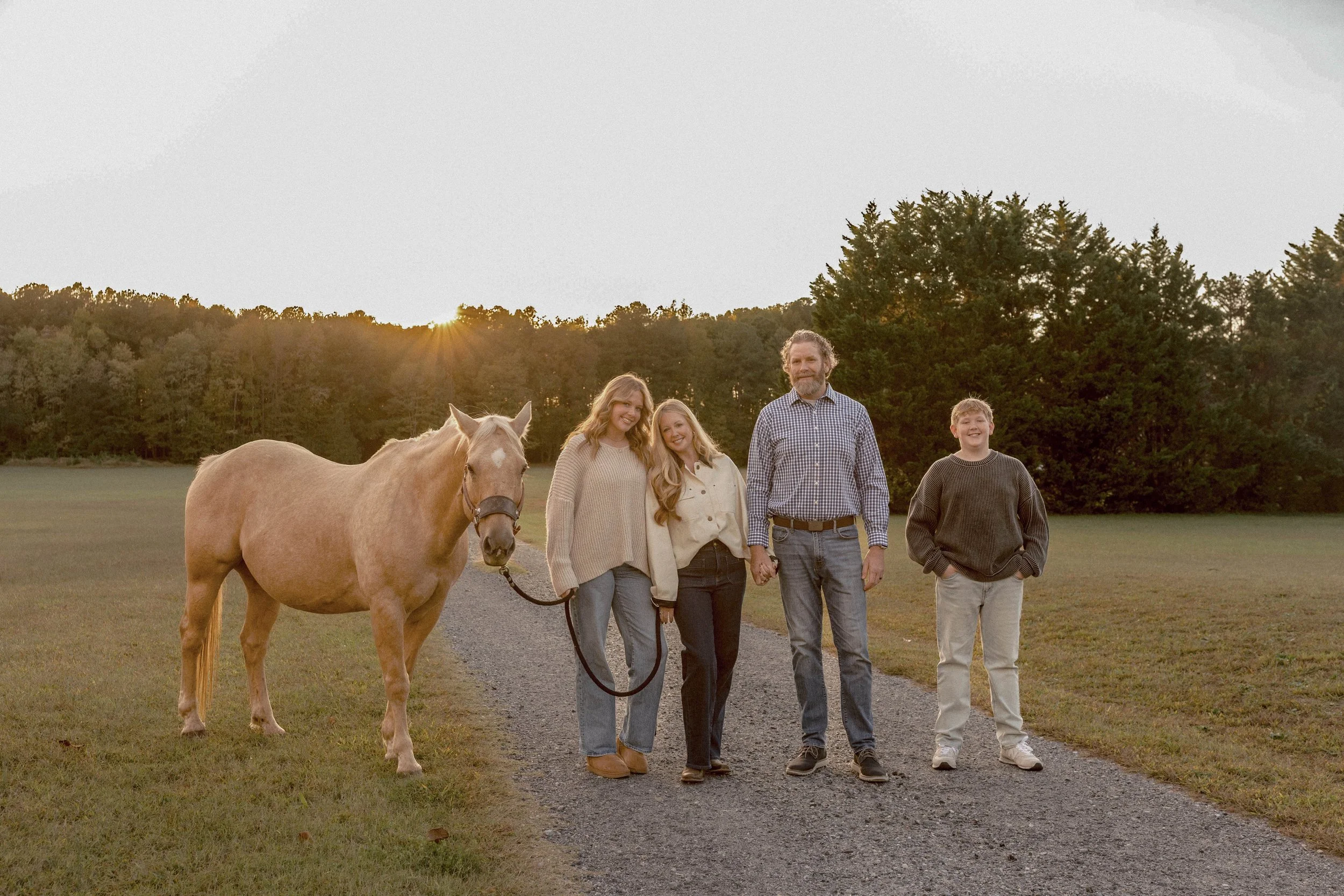 Family with teenage children and their family horse on their country property at the Delaware Beaches